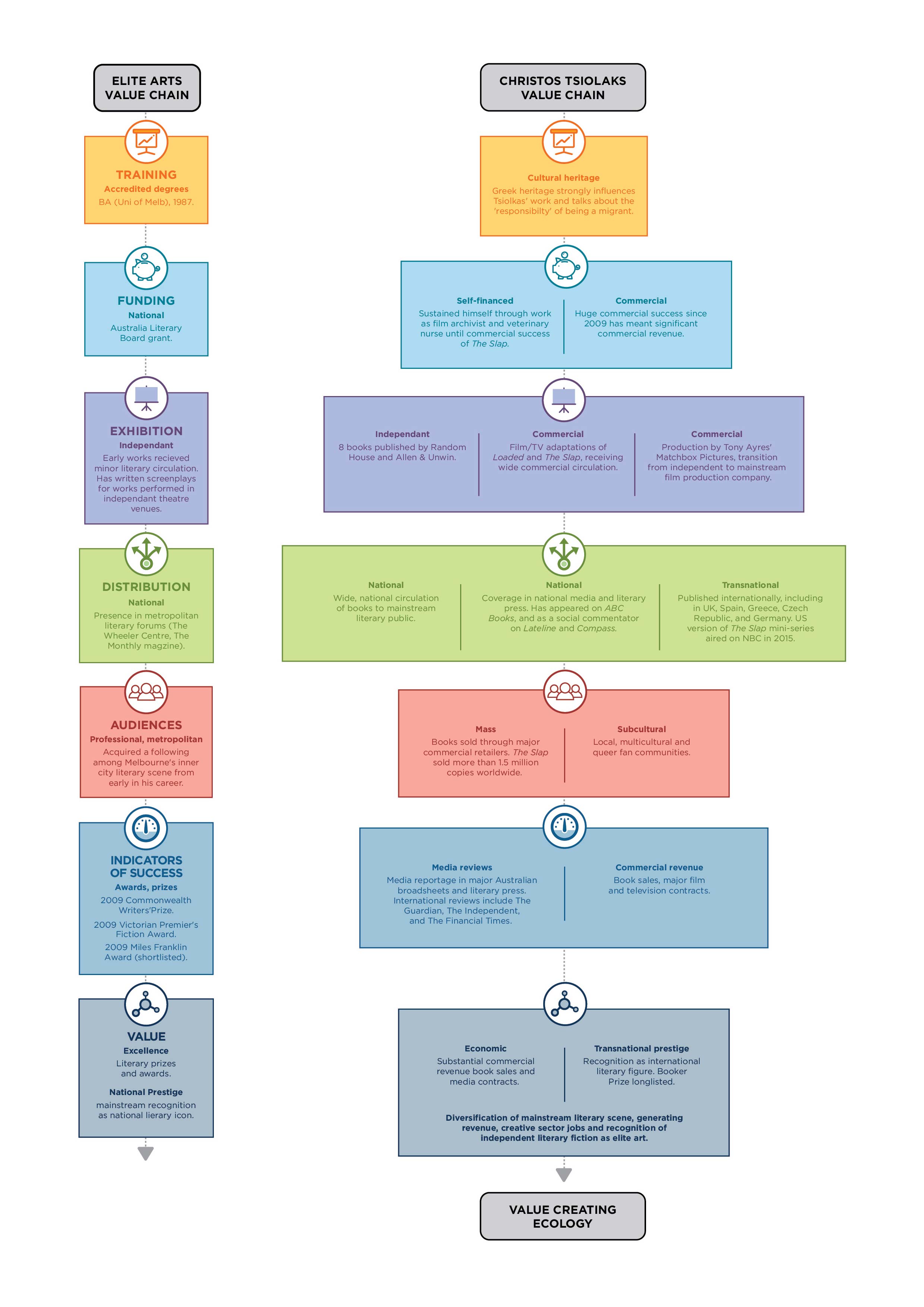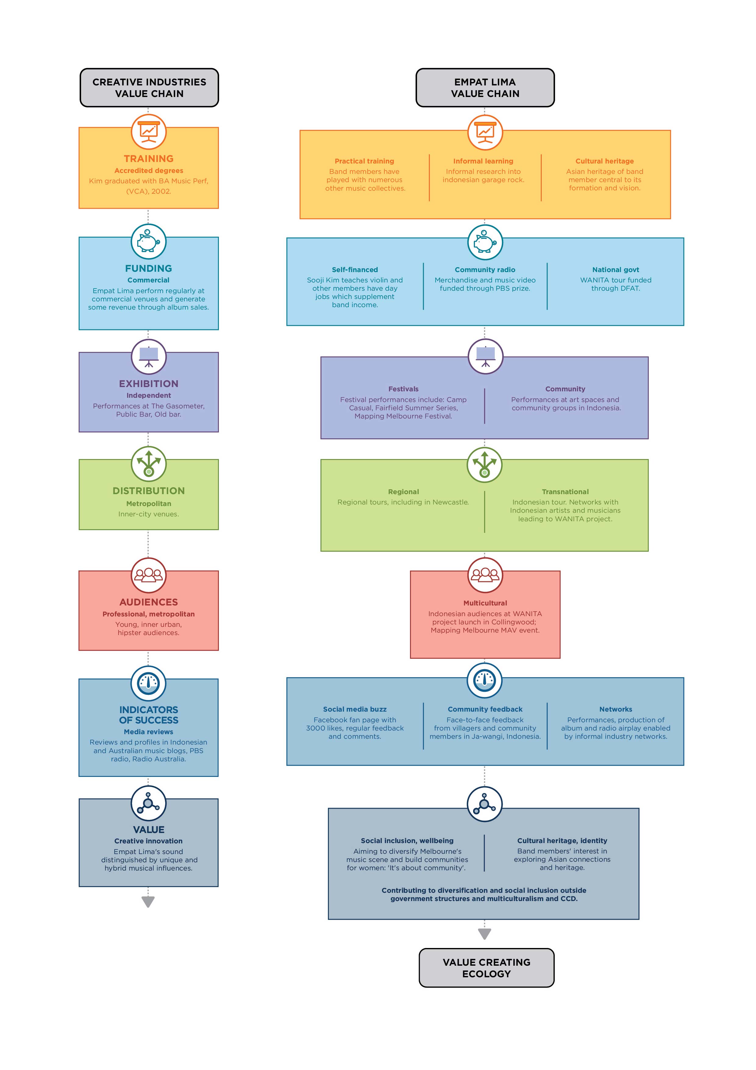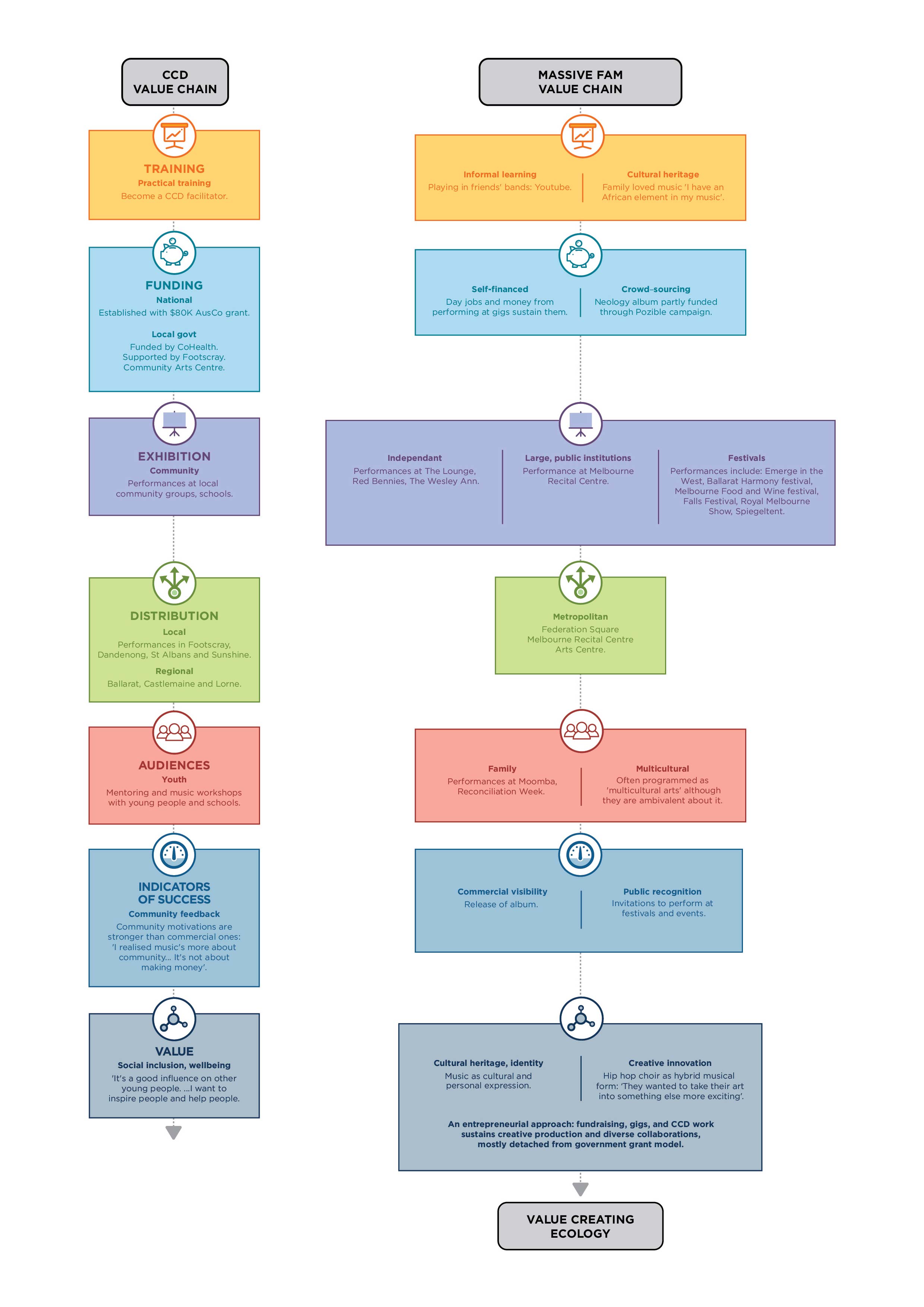 Existing understandings of value do not consider the reality of many artists who move between these sectors. This research shows that multicultural artists are not confined to any one of these sectors but often move flexibly between these different forms of value.